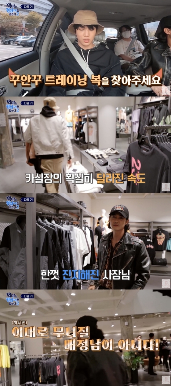 이어 배정남이 '영 앤 리치' 스타일 변신을 예고한다. 배정남을 단번에 '영 앤 리치'로 만든 장본인은 바로 카이. 오늘 카이는 '카실장' 승진 후 첫 코디를 선보일 예정이다. 빈티지 가죽 재킷을 벗고 한층 어려진 배정남의 모습에 모두들 "정남아~"라고 부를만큼 감탄을 금치 않았다는 후문.