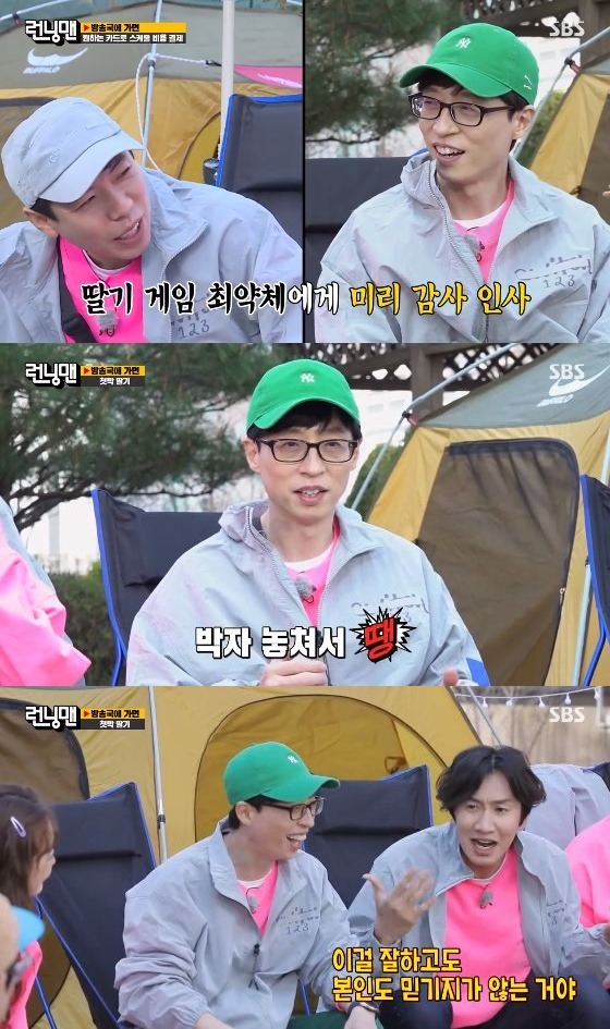9일 오후 방송된 SBS 예능프로그램 '런닝맨'에서는 캠핑장에서의 '딸기 게임'이 그려졌다.