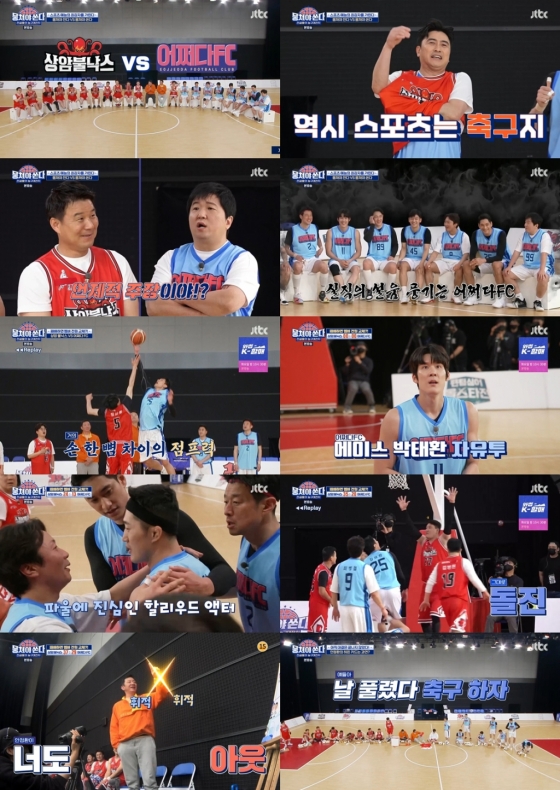 지난 9일 방송된 JTBC 예능프로그램 '뭉쳐야 쏜다'에서는 상암불낙스와 '뭉쳐야 찬다'의 어쩌다FC의 빅매치라는 전무후무한 집안 대결이 벌어져 일요일 밤에 흥미진진한 긴장감을 만개시켰다.
