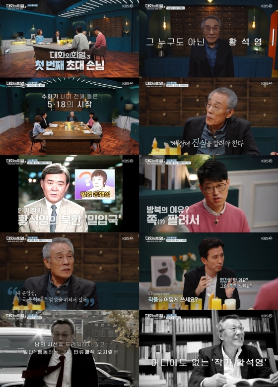 이날 첫 번째 게스트로는 '한국 문학계 거장' 황석영 작가가 출연해, 거침없는 입담을 풀어내며 TV 앞 시청자들을 대화로 빠져들게 만들었다. 우리 역사 어디에나 있었던 황석영의 삶은 그야말로 파란만장했다. 4.19혁명, 베트남 파병, 5.18민주화운동, 민간인 최초 방북과 그로 인한 망명, 수감 생활 등에 대한 이야기가 이어졌다. 한국 근현대사와 함께한 그는 현실에 직접 몸을 담그고 글을 쓰는 '행동하는 작가', '실천하는 문인'이었다.