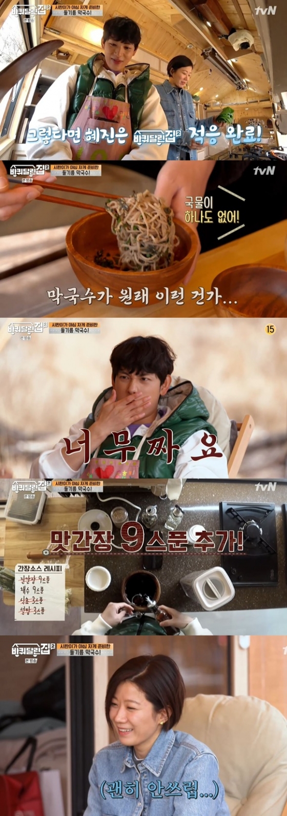 '바퀴 달린 집 2'에서 임시완이 자신의 첫 친구 전혜진을 위해 들기름 막국수와 칵테일을 선물했다.