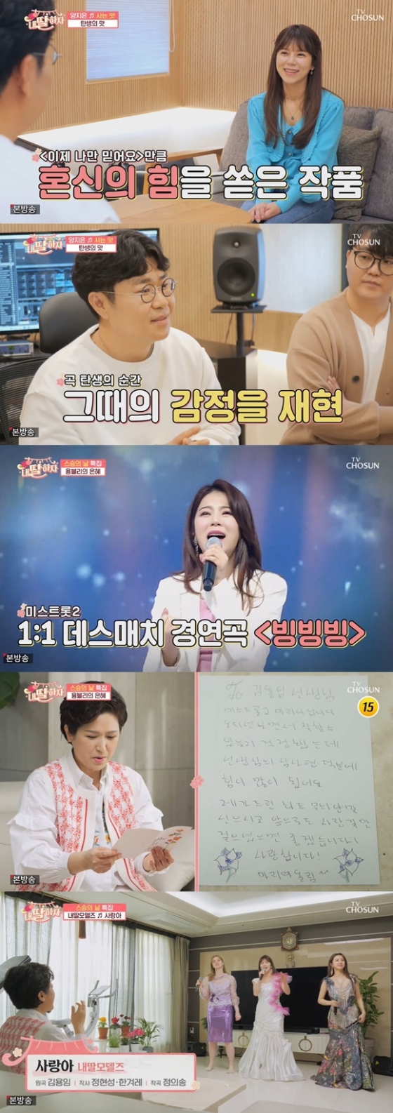 14일 오후 방송된 TV조선 예능프로그램 '내딸하자'에서 양지은이 '미스트롯2' 우승곡으로 '사는 맛'을 선물 받는 장면이 그려졌다.