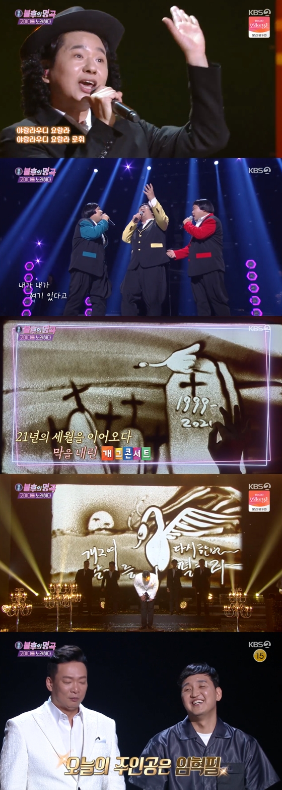 15일 오후 방송된 KBS 2TV 예능 프로그램 '불후의 명곡'에서는 지난해 6월 막을 내린 '개그콘서트'의 주역들이 출연해 무대를 빛냈다.