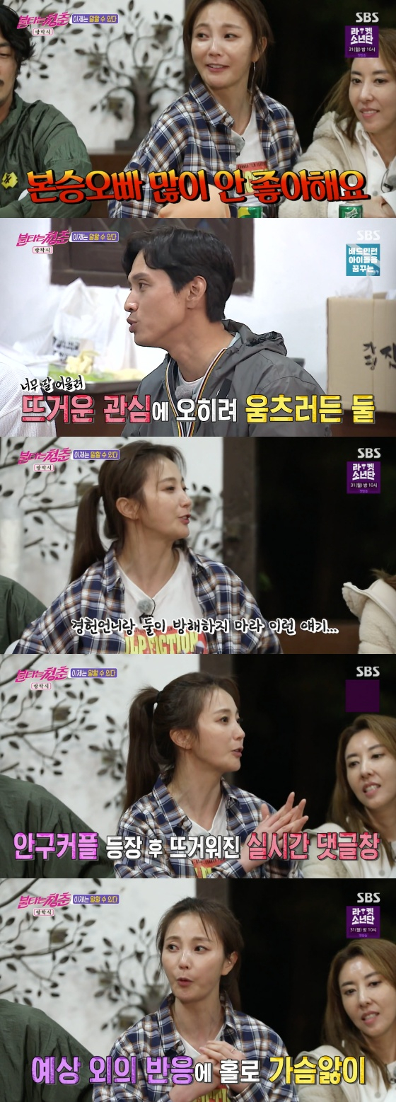 배우 강경헌이 불타는 청춘'에서 '안구 커플' 안혜경-구본승을 불러냈다.
