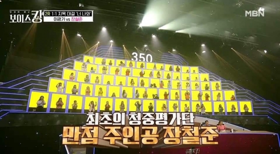 성악가 장철준이 MBN 초대형 보컬 서바이벌 '보이스킹(기획·연출 박태호) 에서 최초로 청중 평가단 350점 만점을 받았다.