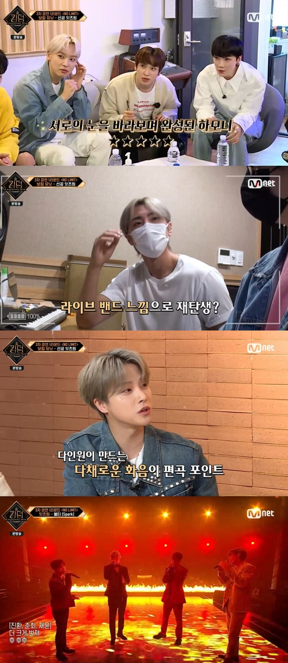 20일 오후 방송된 Mnet 예능프로그램 '킹덤: 레전더리 워'에서는 잇츠원(아이콘 준회, 아이콘 진환, 더보이즈 뉴, 더보이즈 상연, SF9 재윤, SF9 인성)이 보컬 무대를 위해 한자리에 모였다.