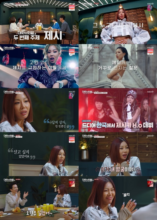 지난 20일 방송된 KBS 2TV '대화의 희열3'의 두 번째 게스트로는 독보적인 아이콘, 센 언니 대표주자 가수 제시가 출격해, 자신의 이야기를 들려줬다. "TV로 보는 제시 말고, 사람들에게 '있는 그대로의 나'를 보여주고 싶다"라고 말한 제시는 자신을 둘러싼 오해와 편견, 센 언니의 정의, 15년 만에 가수로서 빛을 본 스토리 등을 진솔하게 꺼내 눈길을 끌었다.