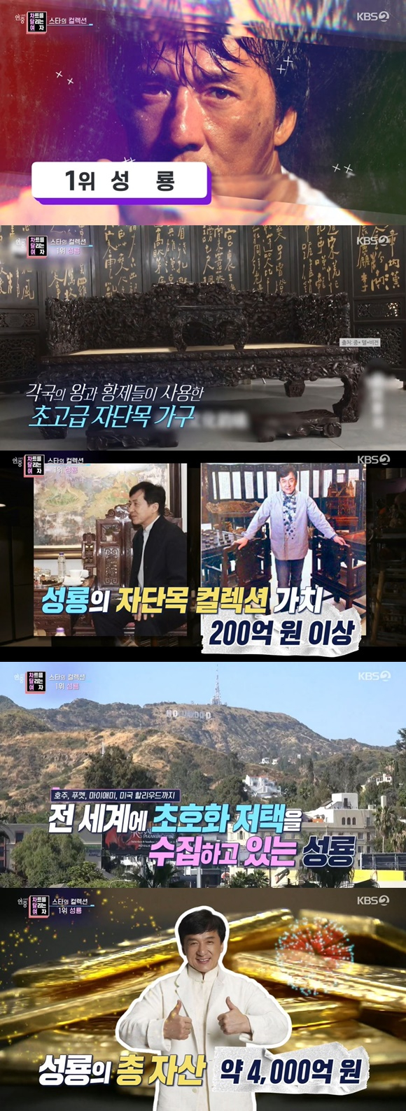 이날 성룡은 수많은 컬렉션을 가진 스타 1위로 총 자산 4천억 원에 달하는 넘사벽 컬렉션이 공개됐다.