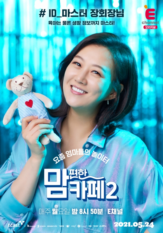 '맘 편한 카페' 시즌2는 24일 오후 8시 50분 티캐스트 E채널에서 첫 방송한다. 육아, 살림에 지친 맘들의 월요병을 시원하게 날려버릴 예정이다. 이동국, 장윤정, 홍현희, 최희, 배윤정은 지난 시즌에 이어 '맘 편한 카페' 시즌2와 함께한다.