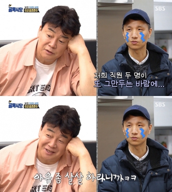 백종원은 김 사장의 조언을 들은 후 "요새 장사는 잘 되느냐"고 물었다. 그러자 김 사장은 "저희 직원 두 명이 그만두는 바람에"라며 말끝을 흐렸고, 백종원은 "아유 좀 살살 하라니까"라고 해 눈길을 끌었다.