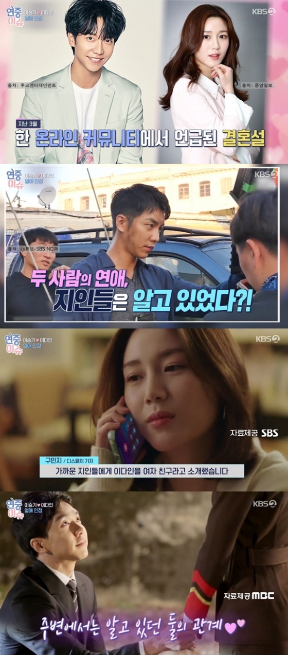 28일 오후 방송된 KBS 2TV 예능프로그램 '연중라이브'에서 이승기와 이다인의 열애 사실을 보도했다.