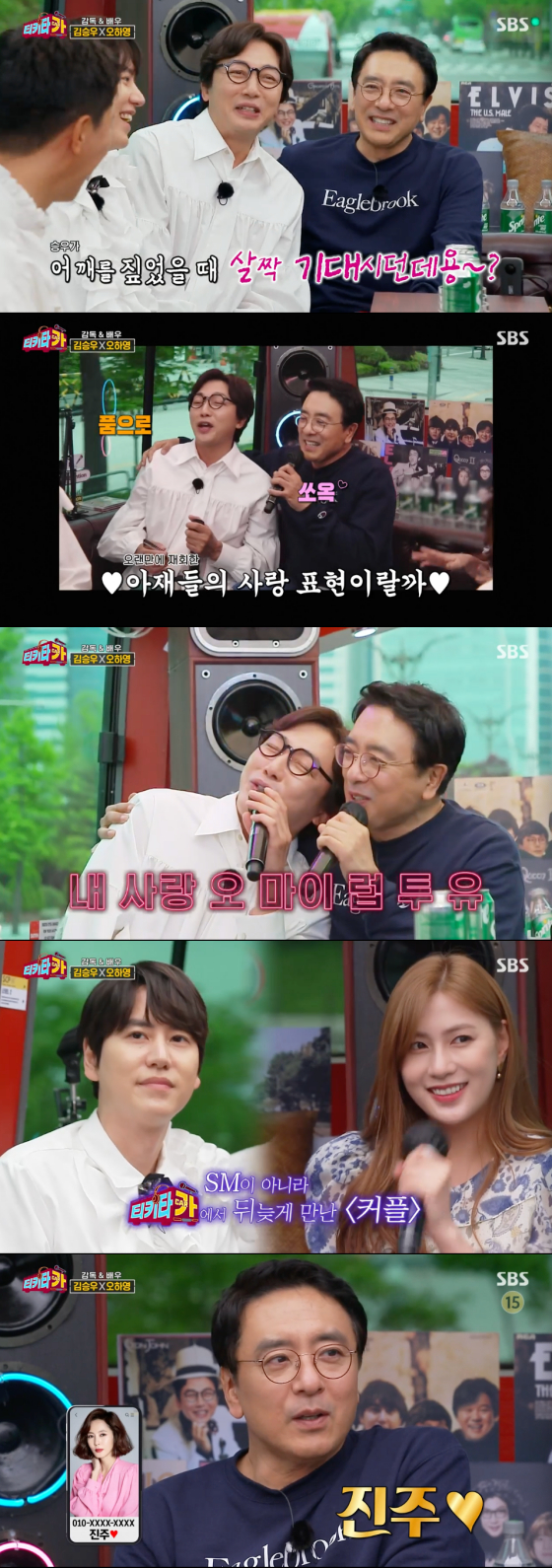 노래를 부르다 김승우는 탁재훈의 어깨를 끌어안았고, 탁재훈은 살짝 김승우에게 기대며 케미를 높였다. 탁재훈은 "의지할 사람도 필요했고, 이럴 때 한번 기대 보는 거다"며 훈훈함을 자아냈는데, 김구라는 이에 "옛날에 방송을 그렇게 하지 그랬냐"며 폭소를 안겼다. 두 사람은 이후 '너만을 느끼며'로 다시 한 번 듀엣 공연을 하며 즐거운 투샷을 선보였다.