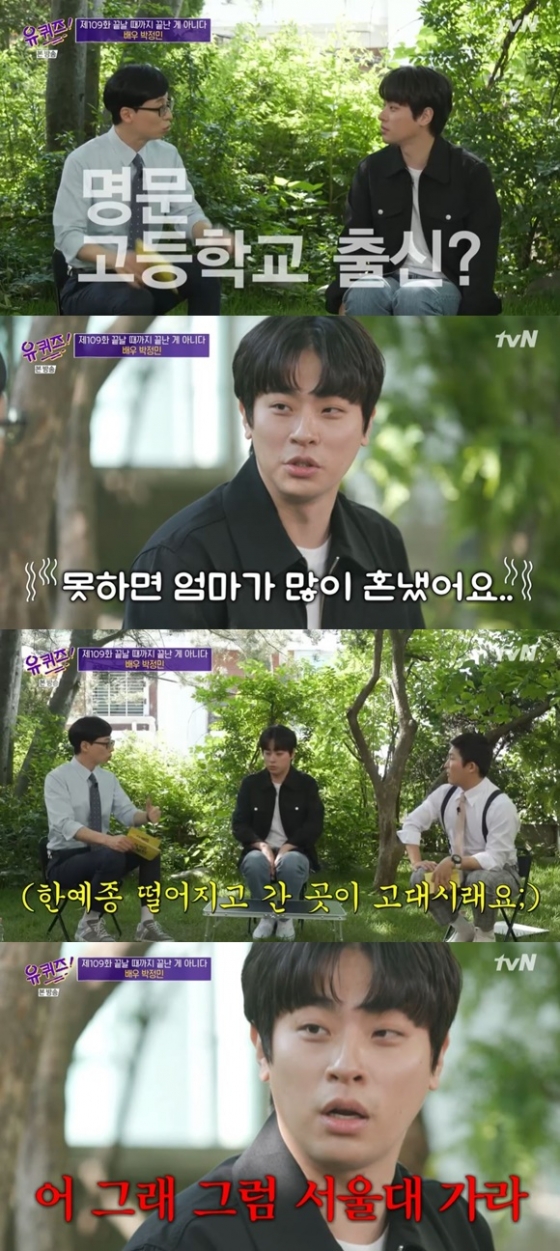 이날 박정민은 중학교 시절 전교권에서 이름을 날릴 정도로 공부를 잘했으며 명문 고등학교 출신이라 밝혔다. 이어 "고등학교 때 영화감독이 되고 싶어서 한국 예술 종합학교 영화과에 지원했는데 떨어졌다. 한예종 떨어지고 고려대에 합격했다. 예술 학교니까 예술적으로 자기소개서를 써야 될 줄 알고 감성적으로 썼다가 교수님께 '자기소개서가 뭔지 모르냐'고 엄청 혼났다"고 말했다.