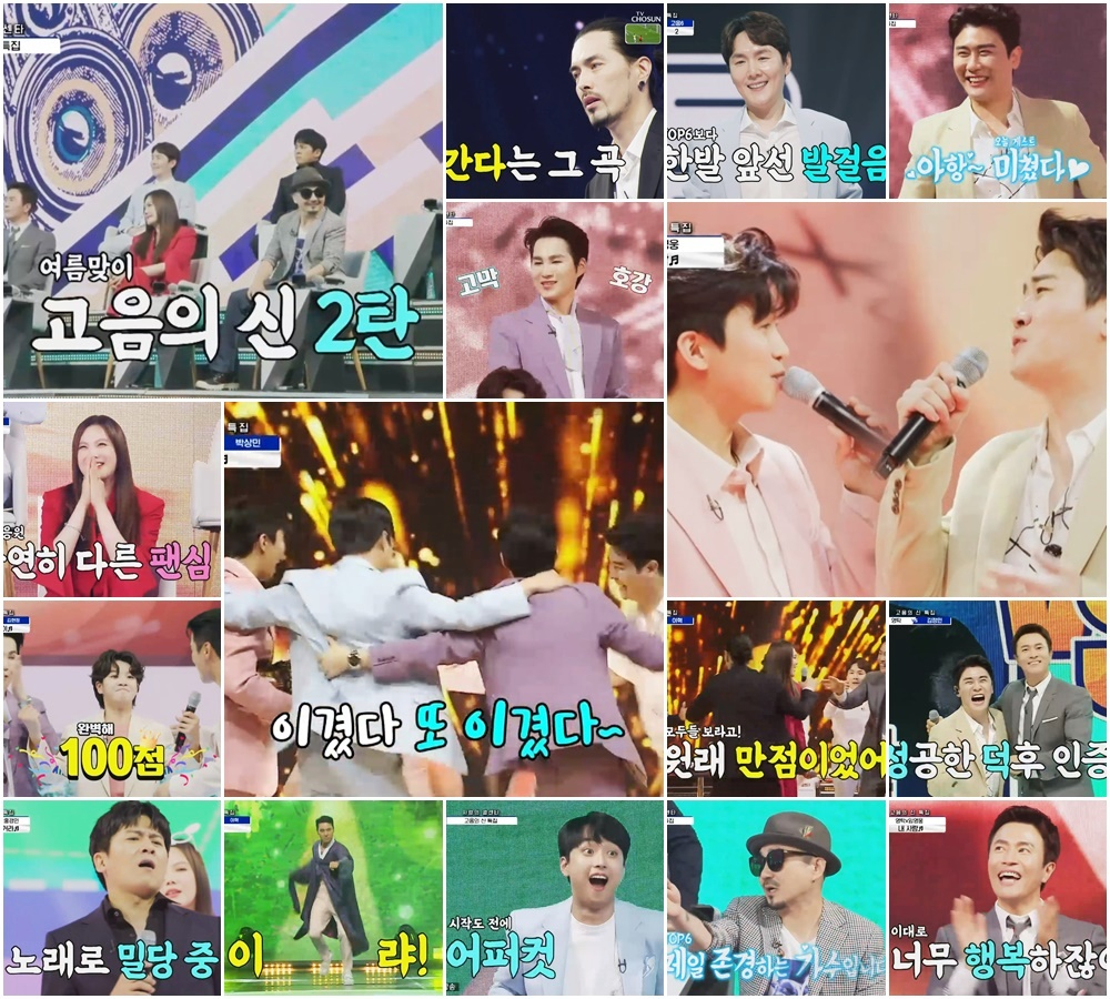 먼저 2000년대 노래방 차트를 올킬한 가수 고유진이 'Endless'를 부르며 등장, 시작부터 대동단결 무대를 꾸몄고, 전(前) 노라조 현(現) 이혁밴드의 이혁이 '형'으로 범접 불가 고음 세계를 펼쳐 보였다. '가요계 원조 돌리도' 김현정이 '멍'으로 일동 '돌리도 춤'에 흠뻑 빠지게 만들었으며, '한국의 리키 마틴' 홍경민이 '흔들린 우정'을 선보이며 '어느 손이 오른손이게 춤'으로 반갑게 무대 위에 올랐다. 뱀파이어급 외모와 목소리로 화려하게 모습을 드러낸 김정민은 '슬픈 언약식'으로 모두를 기립하게 했고, '남자 중의 남자' 박상민이 '하나의 사랑'으로 카리스마 넘치는 무대를 완성했다. "TOP6 이제 내려올 때가 됐다"라던 박상민은 고음6 멤버로부터 공감을 얻지 못하자 "제가 제일 존경하는 가수가 TOP6"라고 금세 말을 바꿔 큰 웃음을 안겼다. 특히 김정민의 오랜 찐 팬임을 밝힌 영탁은 감격의 포옹에 기절할 듯 큰 기쁨을 드러내 훈훈함을 선사했다.