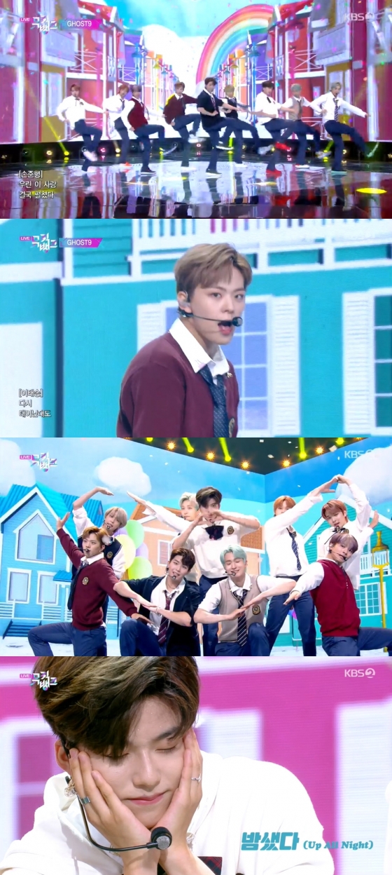 4일 오후 방송된 KBS 2TV '뮤직뱅크'에는 '밤샜다'로 돌아온 고스트나인의 컴백 무대가 공개됐다.