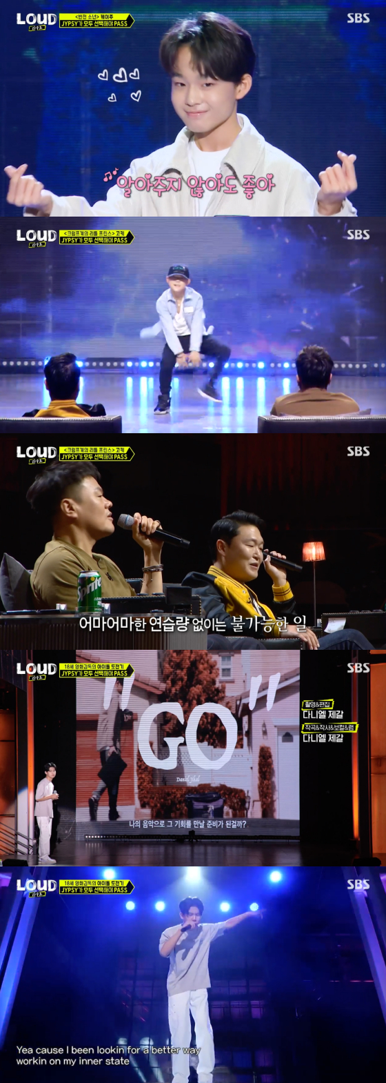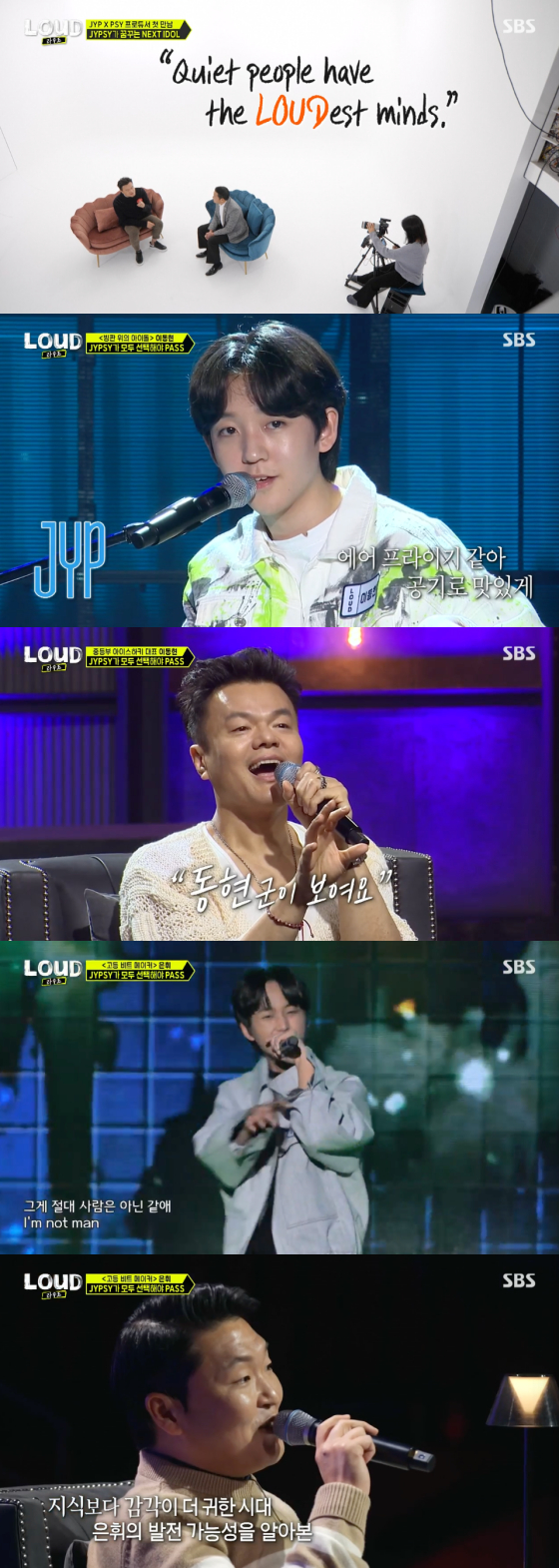 5일 첫 방송된 SBS 예능 프로그램 'LOUD:라우드'에서는 JYP엔터테인먼트 박진영과 피네이션 싸이가 함께하는 보이그룹의 오디션 현장이 그려졌다.