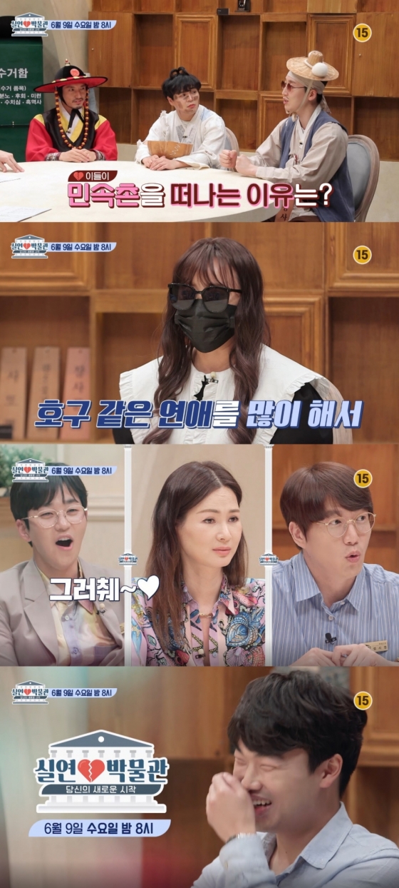 9일 오후 8시 방송되는 KBS Joy 예능 프로그램 '실연박물관' 3회에서는 한국민속촌에서 각각 사또, 원조꽃거지, 장사꾼 캐릭터를 연기한 김탁, 김정원, 신동혁이 실연자로 출연한다.