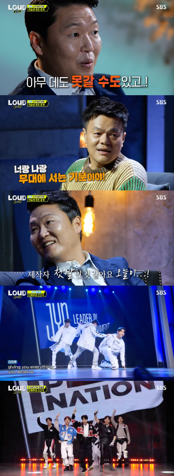12일 방송된 SBS 예능 프로그램 'LOUD:라우드'에서는 JYP의 프로듀서 박진영과 피네이션의 싸이가 뽑은 연습생들의 무대가 공개됐다.