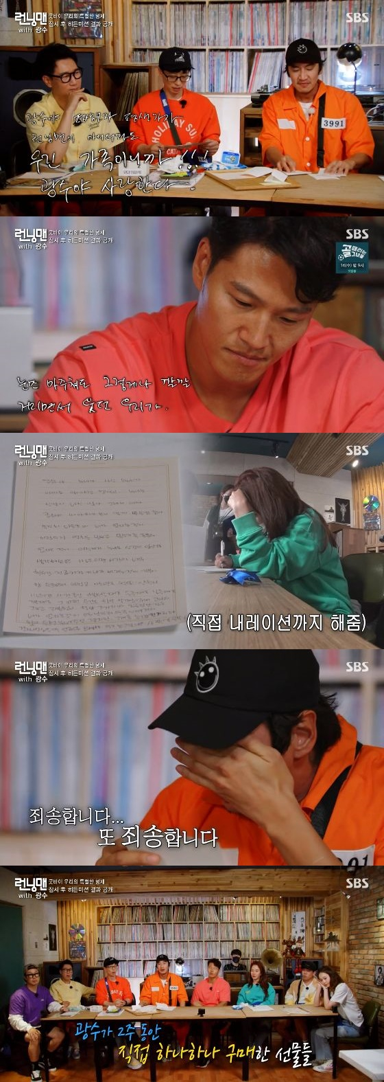 한편 마지막에는 이광수에게 전하는 멤버들의 진심이 공개됐다. 하하는 편지를 쓰며 "이제야 실감난다"며 안타까움을 나타냈다. 이광수는 멤버들의 편지를 보자마자 눈시울을 붉혔다.