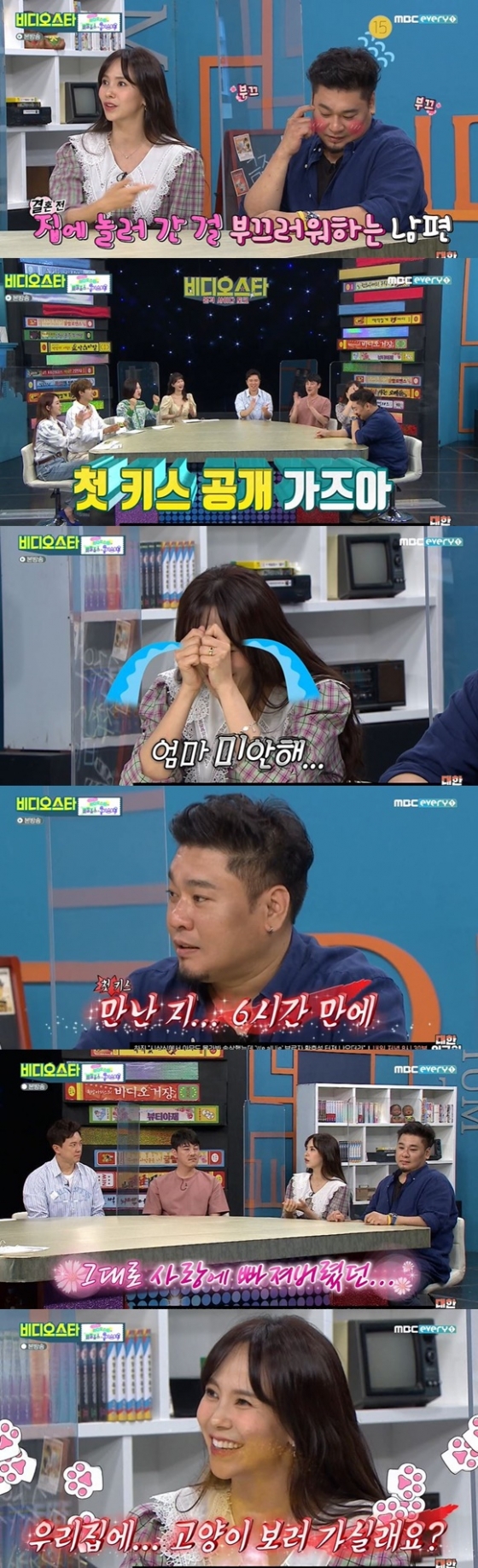 '비디오 스타'에서 김지우가 레이먼킴과 만난 지 6시간만에 첫키스를 하며 결혼까지 골인한 이야기를 공개했다.