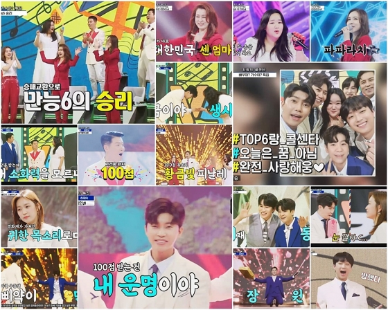 '사랑의 콜센타' TOP6 임영웅-영탁-이찬원-정동원-장민호-김희재와 만능6 문희경-이현우-하재숙-간미연-김슬기-김법래가 장르가 필요 없는 유쾌통쾌 대축제로 목요일 밤 안방극장을 뜨겁게 달궜다.