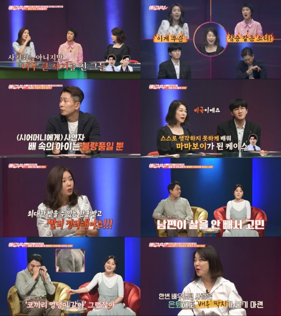 한편, '속터뷰'에는 영화 '번지점프를 하다'의 미소년 배우 출신 재무설계사 여현수와 '사랑비' MV 속 김태우의 그녀인 배우 정혜미 부부가 출연했다. 아내 정혜미는 "남편이 결혼 후 20kg이나 쪘는데, 말로만 다이어트 중이다"라며 하소연했다.