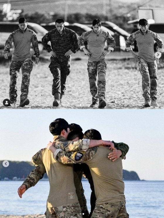 공개된 사진에는 UDT 예비역 신분으로 '강철부대'에 출연한 육준서와 김범석, 정종현, 김상욱의 모습이 담겨 있다. 늠름한 자태로 나란히 걷고 있거나 함께 부둥켜 안고 전우애를 과시하고 있다. 게시물을 본 '강철부대' 특전사 팀 정태균(마블제이)은 "멋있어"라고 댓글을 남겼다.