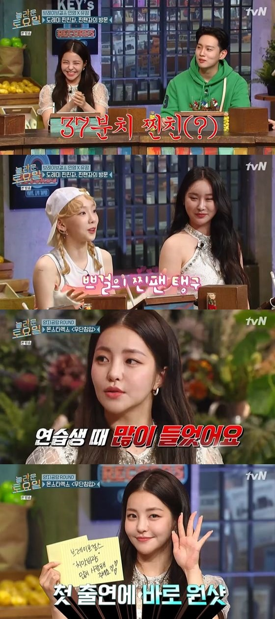26일 오후 방송된 tvN 예능프로그램 '놀라운 토요일 - 도레미 마켓'(이하 '놀토')에서는 그룹 브레이브걸스의 민영, 유정이 출연해 받쓰에 도전했다.