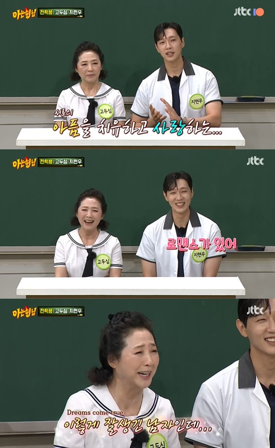 26일 방송된 JTBC 예능 프로그램 '아는 형님'에는 영화 '빛나는 순간'에서 함께 호흡을 맞춘 고두심, 지현우가 전학생으로 출연했다.