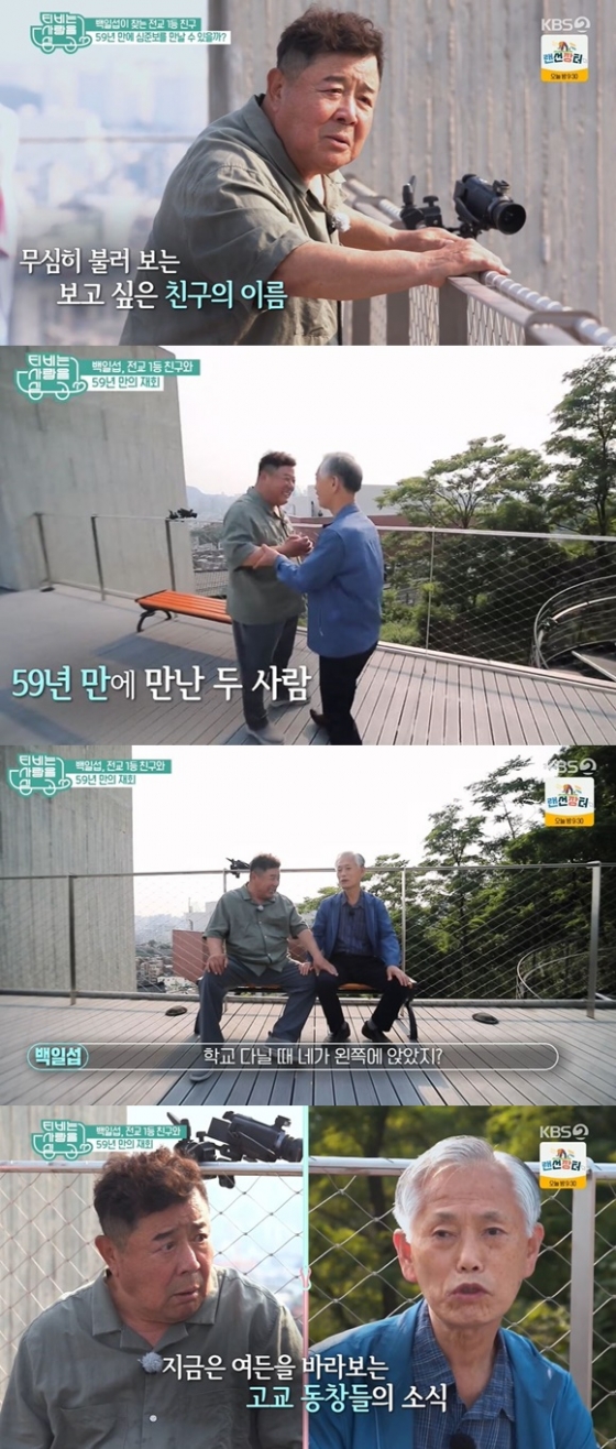 'TV는 사랑을 싣고'에서 배우 백일섭이 59년 만에 자신의 공부를 도와준 친구와 재회했다.