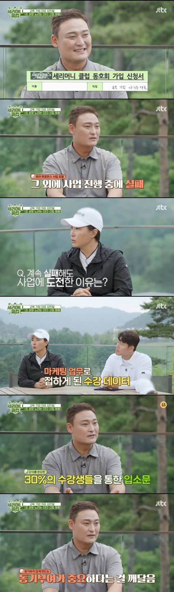 30일 오후 방송된 JTBC 예능프로그램 '회원모집-세리머니 클럽'(이하 '세리머니 클럽')에서는 MC 박세리, 김종국, 양세찬이 게스트로 영어교육 기업 '야나두'의 김민철 대표를 만났다.