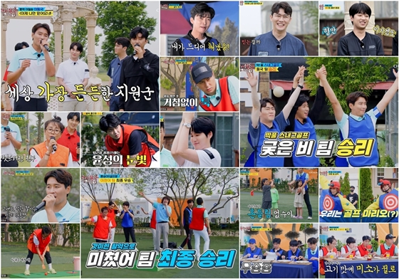 또한 임영웅은 하키채로 팬들을 향한 건행샷을 날리며 시선을 강탈했는가 하면, 뒤집개 퍼팅에 나선 김미현과 효자손을 선택한 이동국은 팀장다운 실력을 발휘했지만 연이어 실패했다.