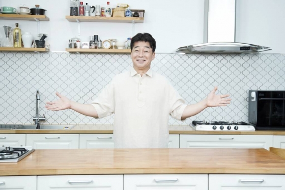 요리연구가 백종원이 2일 오후 온라인 생중계로 진행된 JTBC 예능 '백종원의 국민음식 - 글로벌 푸드 편' 제작발표회에 참석해 포즈를 취하고 있다. /사진제공=JTBC 2021.07.02