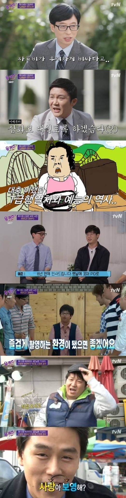 "MBC에 자료 요청 비용만 4000만 원이 나왔다고 한다" tvN '유 퀴즈 온 더 블럭'(이하 '유퀴즈')에서 유재석이 한 말이다. 최근 '유퀴즈'에서 부쩍 '무도' 언급과 게스트 출연이 많았던 탓이다. 유재석이 밝혔듯, '무도'가 이미 종영한 터라 유재석의 대표 예능으로서 '무도'를 언급할 자리 자체가 없어진 상황. 유재석은 '무도' 얘기를 꺼내다가도 "과거, 추억 회상하는 거 조심해야 한다"고 말해 또 다른 개그 파생으로 웃음을 만든다. 자료비를 아끼느라 정준하의 놀이기구 열차 짜장면 먹방을 제작진의 손그림으로 대체한 것도 같은 맥락이다.