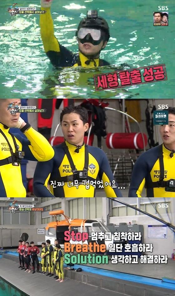 4일 오후 방송된 SBS 예능프로그램 '집사부일체'에서는 침몰 선박에서 탈출하는 멤버들의 모습이 그려졌다.