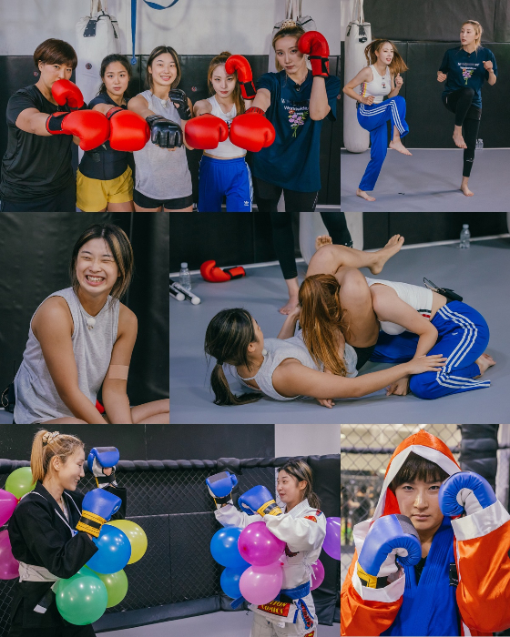 또 종합격투기의 매력에 푹 빠진 언니들은 로킥과 니킥을 넘어 다른 기술까지 눈독을 들인다. 급기야 뒤에서 상대방의 목을 조르는 백 초크를 당해보겠다고 자원하기에 이른다고. 그러자 서지연은 해맑은 얼굴로 언니들의 목을 팔로 힘껏 감아 힘 하면 빠지지 않는 언니들에게 난생처음 겪어보는 숨 막히는 경험을 선사했다는 후문이다.