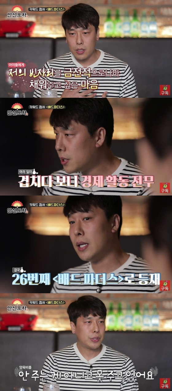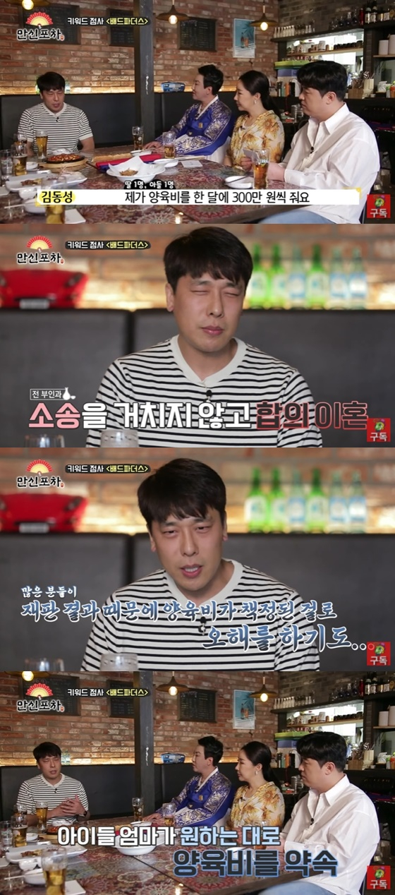 김동성은 지난 10일 공개된 유튜브 채널 베짱이엔터테인먼트 예능인 '만신포차'에 게스트로 출연했다. 그는 밀린 양육비에 대해 솔직하게 털어놨다.