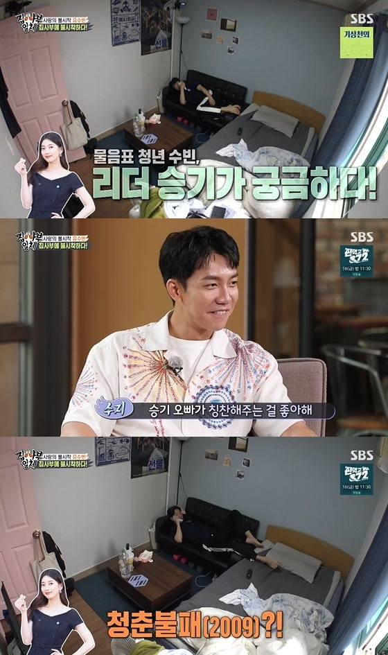수지는 "승기 오빠는 칭찬해주는 걸 좋아한다"고 답했다. 수지의 답에 이승기도 인정했고, 양세형은 "(이승기는) 유독 칭찬을 좋아한다"고 덧붙여 웃음을 자아냈다.