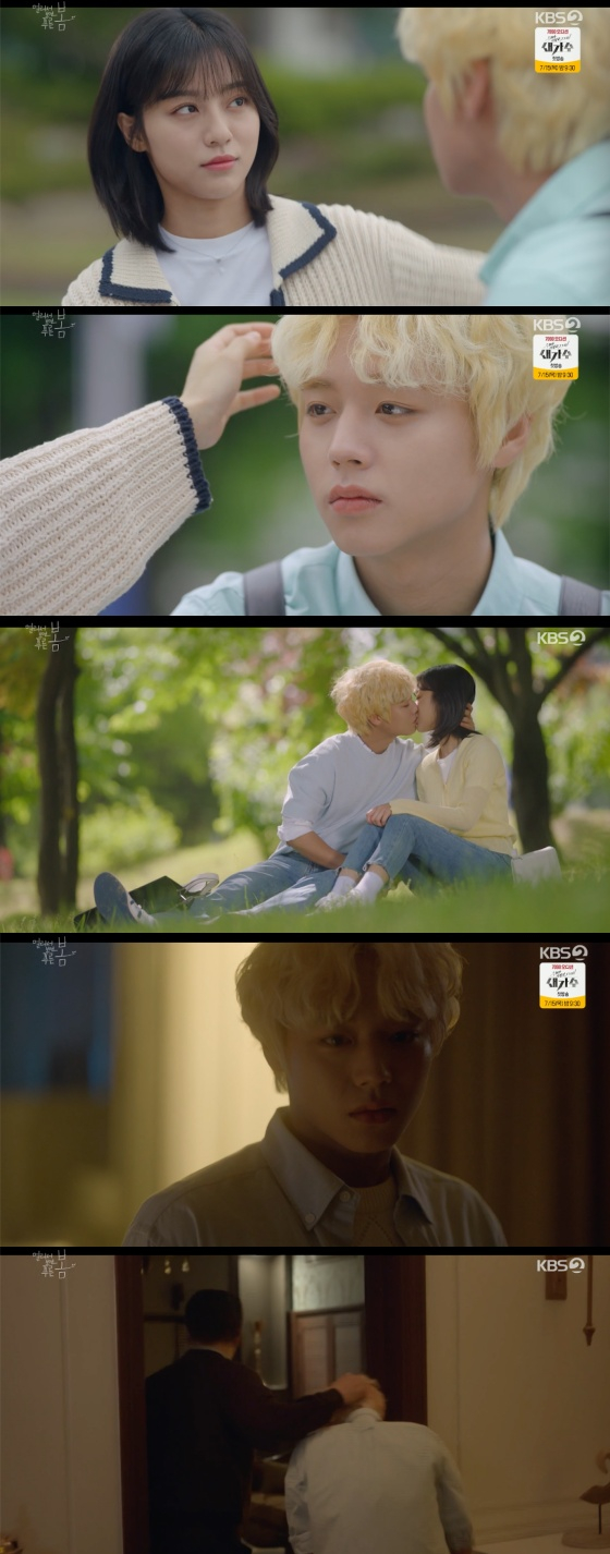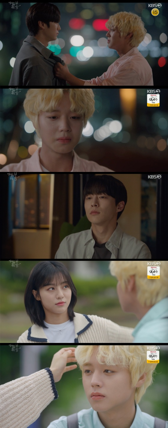13일 오후 방송된 KBS 2TV 월화드라마 '멀리서 보면 푸른 봄'에는 여준(박지훈 분)이 여준완(나인우 분)과 화해하고 상처를 치료해가는 장면이 전파를 탔다.