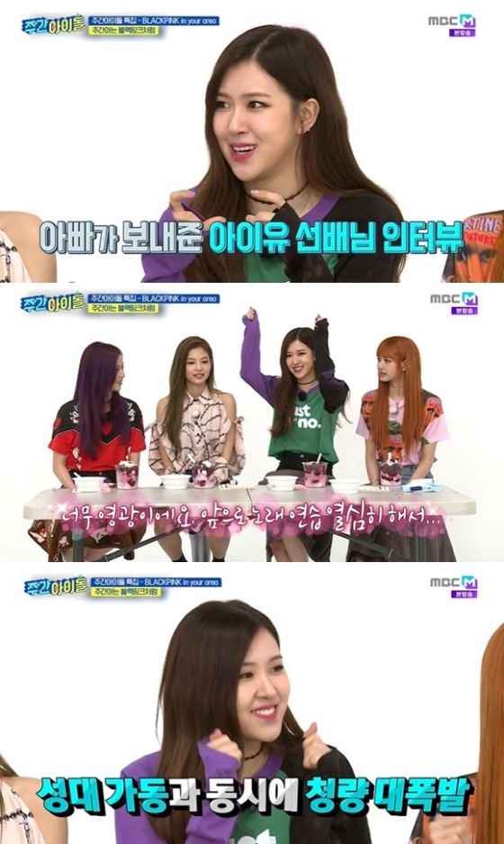'주간 아이돌'에서 걸 그룹 블랙핑크의 멤버 로제가 가수 아이유가 함께 작업하고 싶다고 말한 인터뷰를 언급했다.