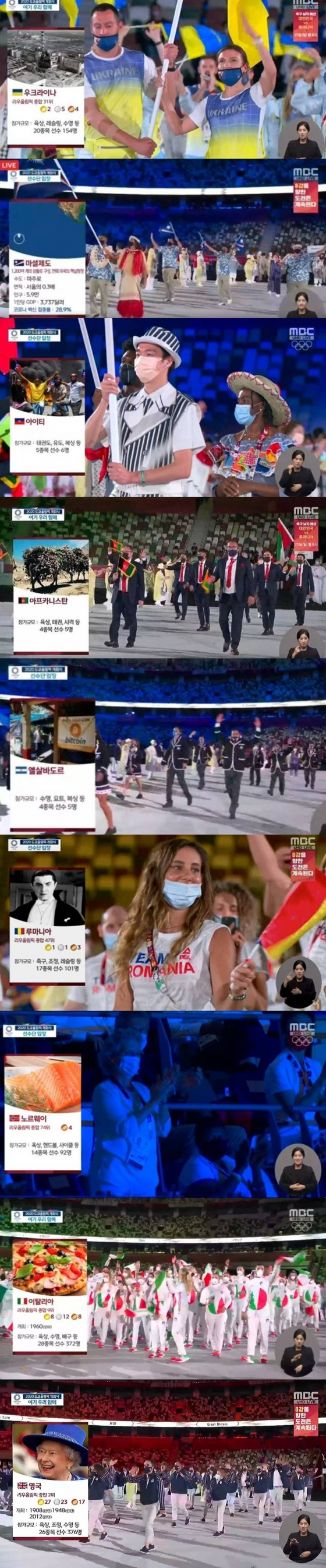 MBC는 지난 23일 2020 도쿄올림픽 개막식 중계 방송 중 각국 선수단이 입장할 때 부정적이고 희화화 된 모습으로 비춰질 수 있는 국가 설명을 해 논란을 빚었다.