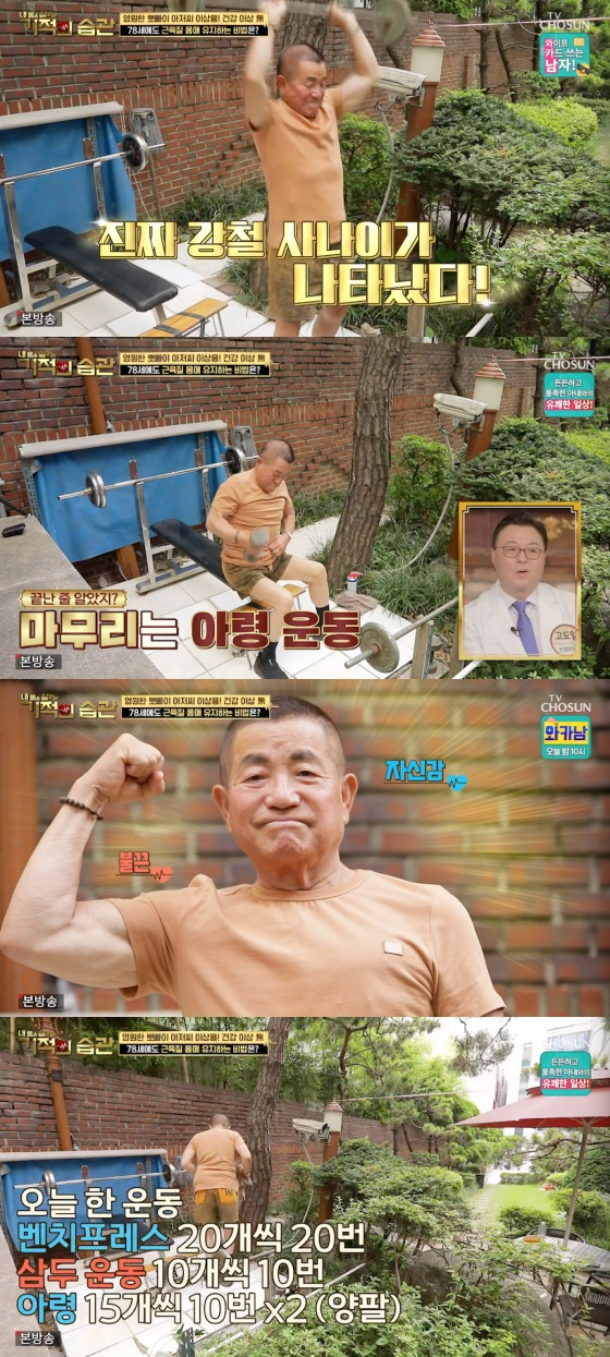 이상용은 운동을 멈추지 않았다. 이상용은 벤치프레스를 끝낸 후 삼두 운동, 아령 등 각종 근력 운동을 했다. 78세의 나이라곤 믿기지 않는 체력이었다.