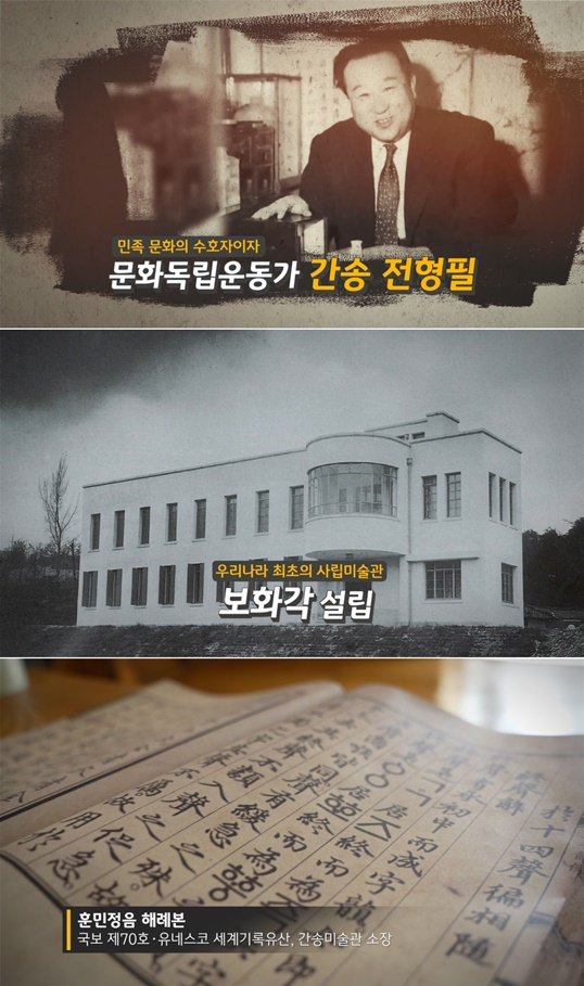 이번 4분 30초짜리 영상은 KB국민은행의 '대한이 살았다' 캠페인 일환으로 제작됐으며 한국어 및 영어로 공개됐다. 영상의 주요 내용은 일제의 문화재 침탈에 맞서 훈민정음 해례본 등 국보급 문화재를 지켜낸 '문화독립운동가' 간송 전형필 선생의 주요 업적을 소개하고 있다.