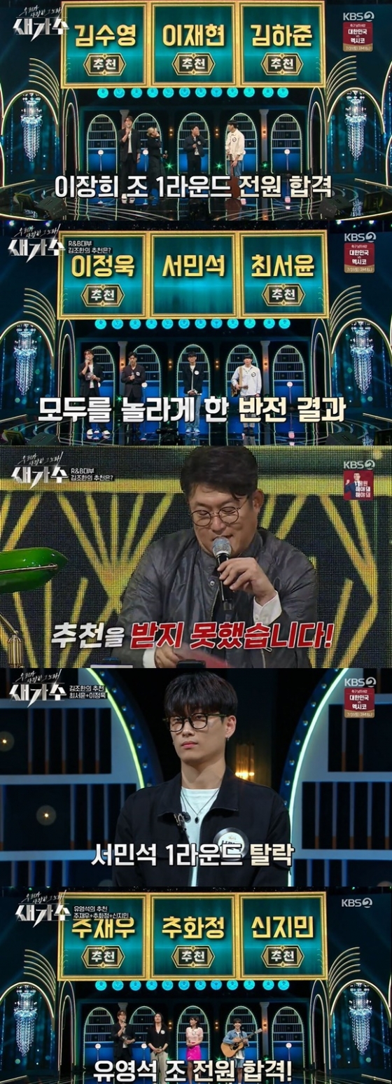 29일 오후 방송된 KBS 2TV 예능프로그램 '우리가 사랑한 그 노래 새가수'에서 7조와 9조 전원 합격, 8조에서 서민석을 제외 합격했다.
