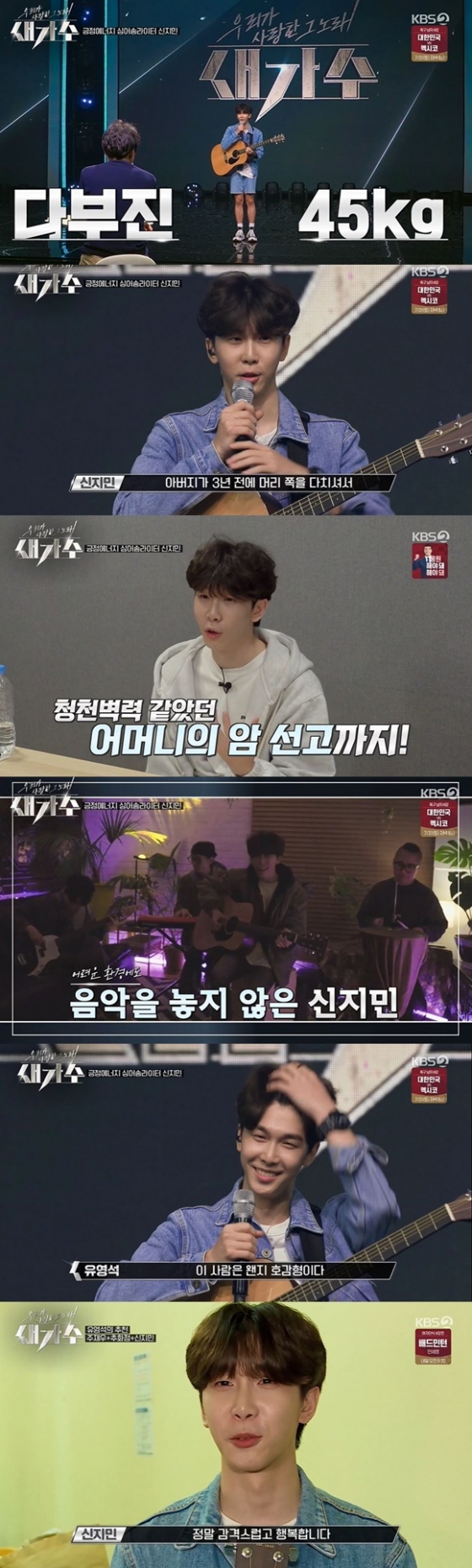 유영석이 "지원동기를 보기까 하늘에 계신 아버지를 위해 나오셨다고?"라고 묻자 신지민은 "아버지께서 년 전에 머리 쪽을 다치셔서 병치레하시다가 돌아가셨는데 그때 진짜 막 살았죠. 아버지 돌아가시고 나서 어머니도 아프셔서 뭐라도 해야겠다 해서 음악을 시작했다"고 말했다.