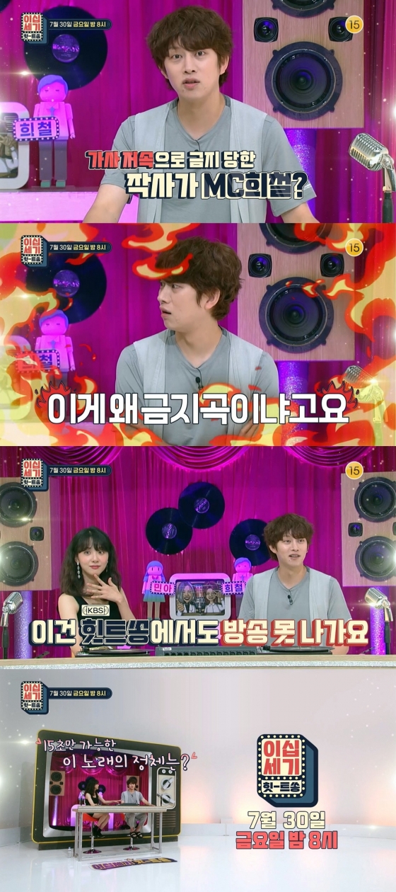 이와 함께 '힛트쏭'의 MC 김희철의 슈퍼주니어 곡 중에도 금지곡이 있다는 이야기에 스튜디오가 술렁였다는 후문이다. 김희철은 데뷔 전에는 인원, 데뷔 후에는 본인의 '왜색' 때문에 금지될 뻔했다는 에피소드를 털어놔 주위를 깜짝 놀라게 만든다.