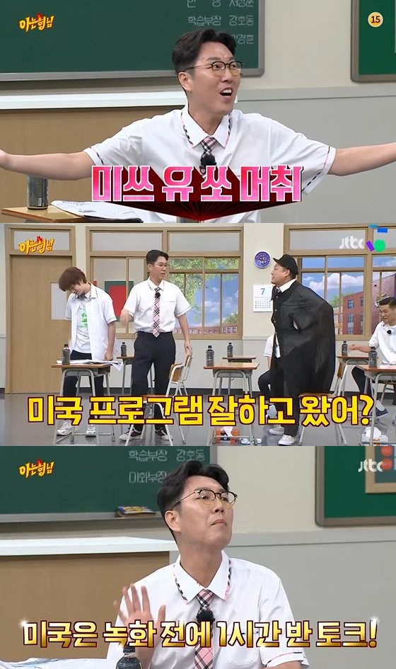 김희철은 김영철에게 "'아형'보다 잘했어?"라고 물었고, 김영철은 "당연히 아형보단 잘했지"라고 말해 웃음을 자아냈다.