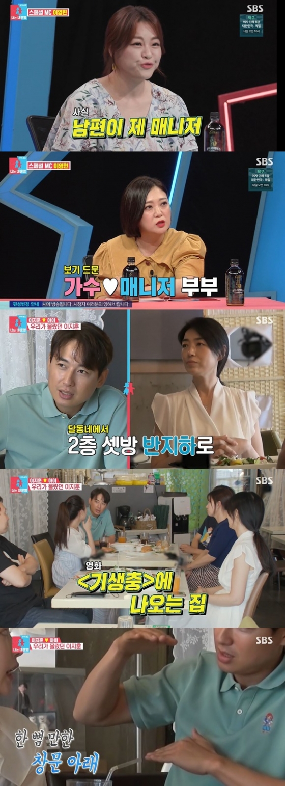 이지훈은 "달동네에서 2층 셋방 갔다가 반지하 갔다가. 영화 '기생충'에 나왔던 집 알지? 그런 집이야. 설거지를 하면 물이 세고 장마가 오면 물이 다 차 있었다. 반지하 보다 더 깊은 지하였다"고 설명했다.
