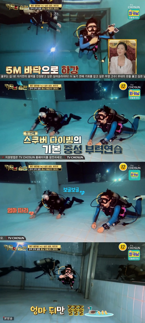 배우 방은희가 '기적의 습관'에서 아들 김두민과 스쿠버다이빙을 했다.
