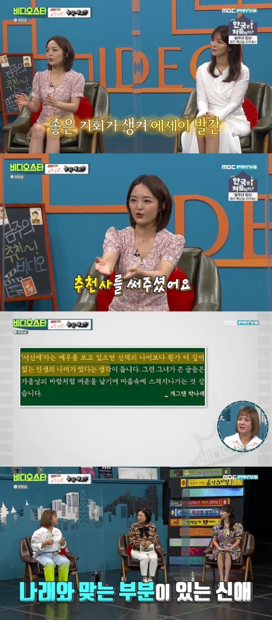 '비디오 스타'에서 배우 서신애가 에세이를 발간한 것과 관련해 박나래가 추천서를 써줬다고 언급했다.